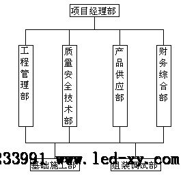 供应部:负责产品供应、施工工具管理、施工机具管理,检查采购物资的质量。